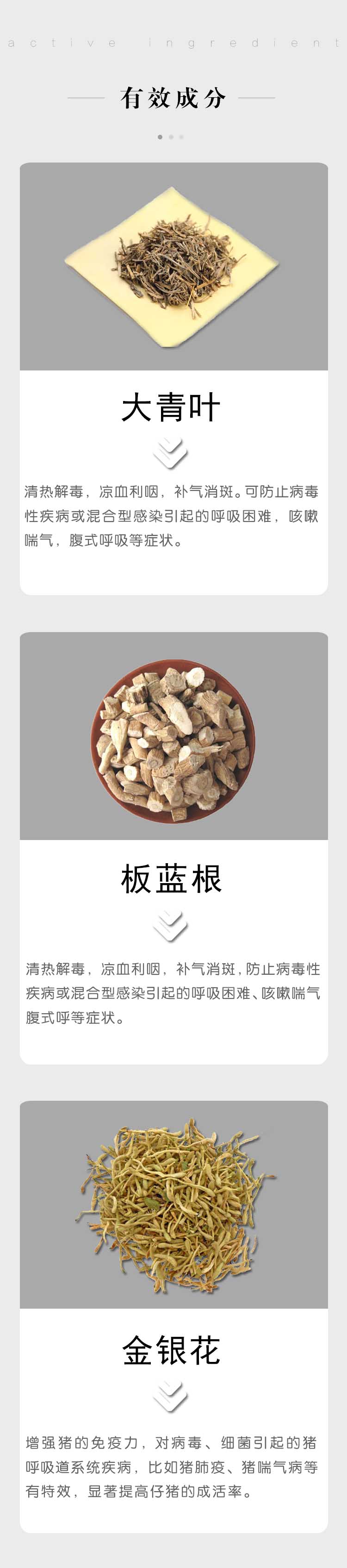 3、提高猪群免疫力,对病毒、细菌等引起的猪呼吸系统疾病,比如猪肺疫、猪喘气病、猪胸膜性肺炎等有特效,显著增强仔猪的免疫力和抗应激能力,提高仔猪的成活率。